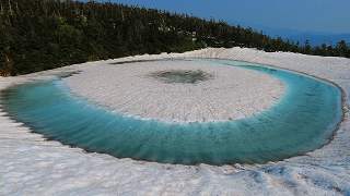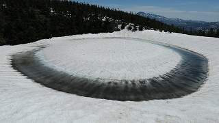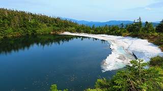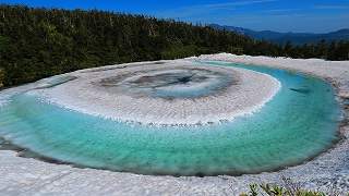 岩手から秋田にまたがる国立公園八幡平の山頂付近にある鏡沼の雪解けの様子が、まるで龍の眼の様に見えることから「八幡平ドラゴンアイ」と呼ばれており、5月の中旬から6月の中旬の限られた時期に見られる神秘的な景色です。