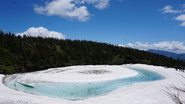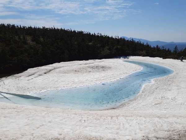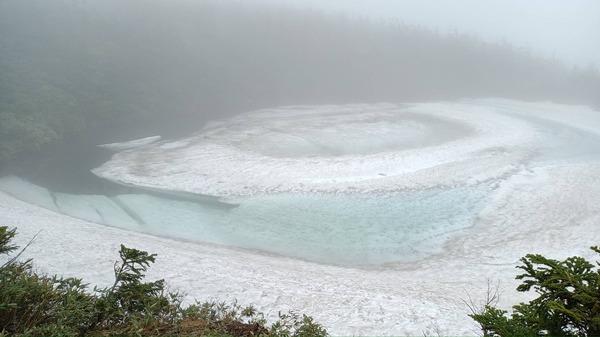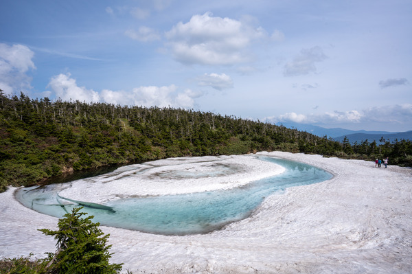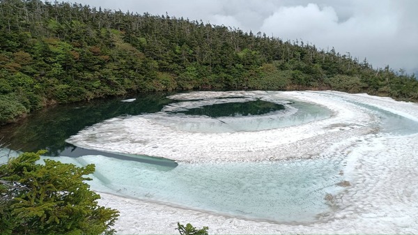 岩手から秋田にまたがる国立公園八幡平の山頂付近にある鏡沼の雪解けの様子が、まるで龍の眼の様に見えることから「八幡平ドラゴンアイ」と呼ばれており、5月の中旬から6月の中旬の限られた時期に見られる神秘的な景色です。
