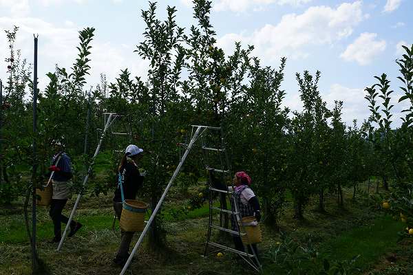 早生りんごの収穫