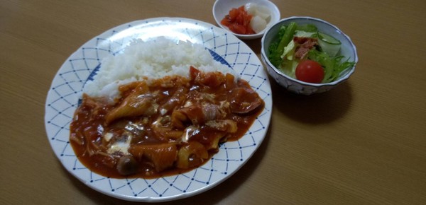 (水100cc,砂糖 小さじ 4, 醤油 大さじ 2,酒 小さじ 4, ケチャップ 大さじ 2,ガラスープの素 小さじ 2)