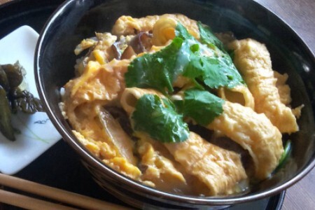 掲載の写真は、切り板麩を使った卵とじ丼です。これが 麩 ⁉ と思うほどしっかりした腰があります。